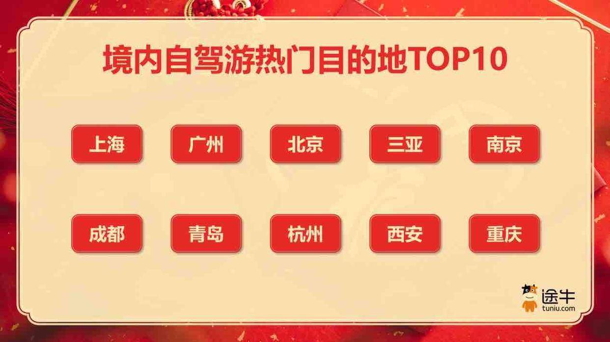 《报告》数据显示,春节旅游市场途牛平台境内游热门目的地中,上海、北京、广州、三亚、南京、成都、重庆、西安、厦门、哈尔滨成为游客更为热门的选择,出游热度位居“春节境内游热门目的地榜单”前列。